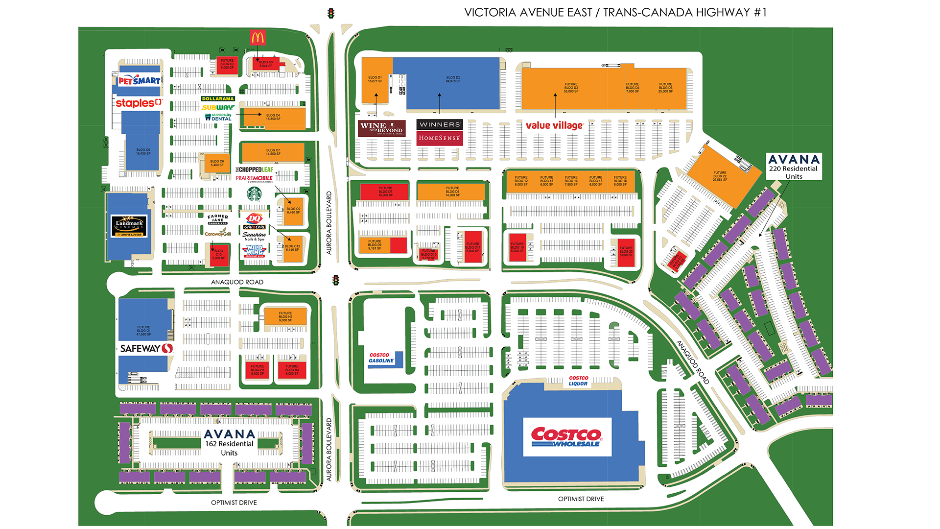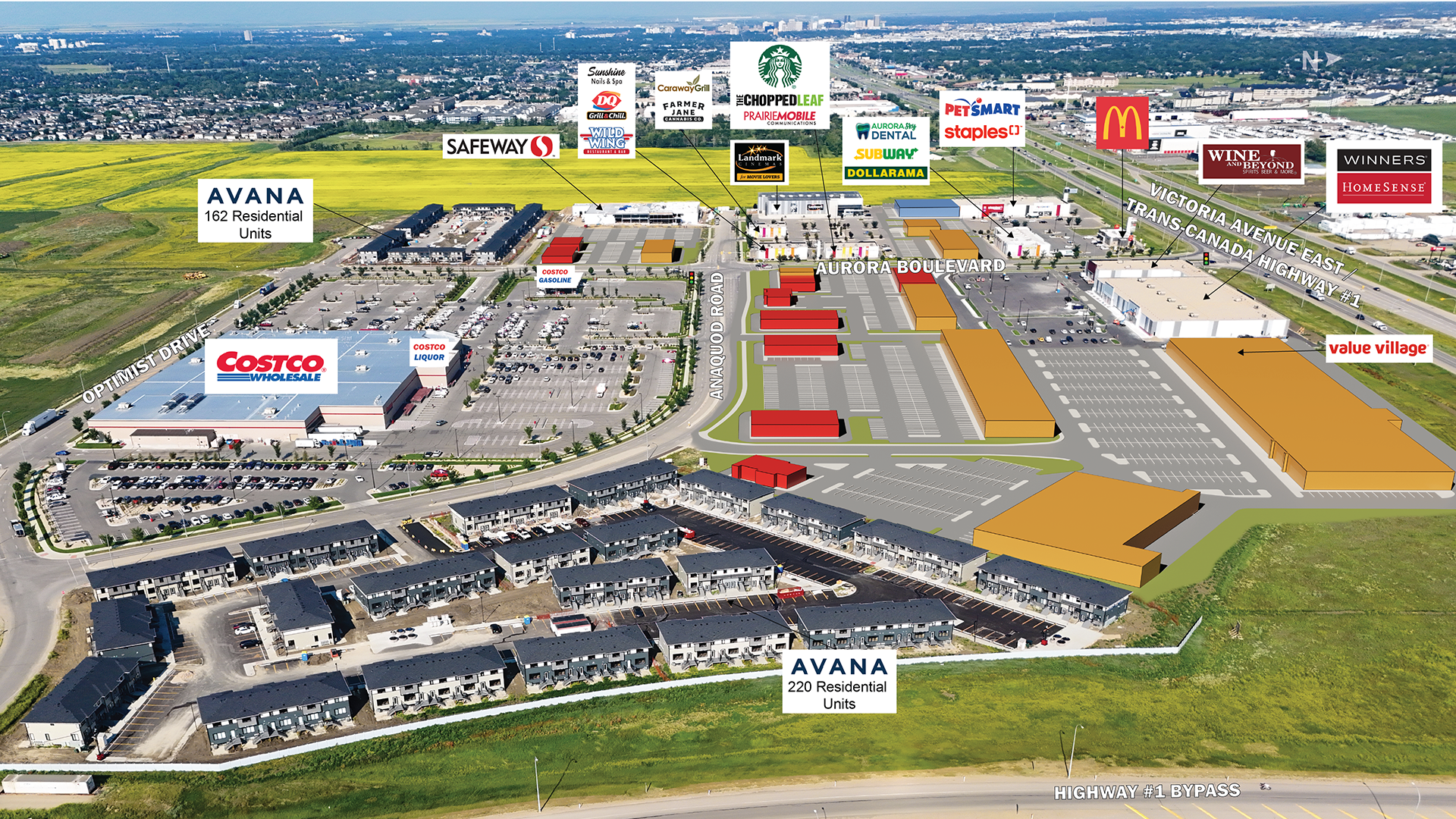 Anchored by Costco, Landmark Cinemas, PetSmart, Staples, Winners / HomeSense… Aurora is the newest regional retail site servicing Regina and surrounding communities as the dominant urban shopping centre offering entertainment, dining, as well as large and small format stores all in one convenient location.