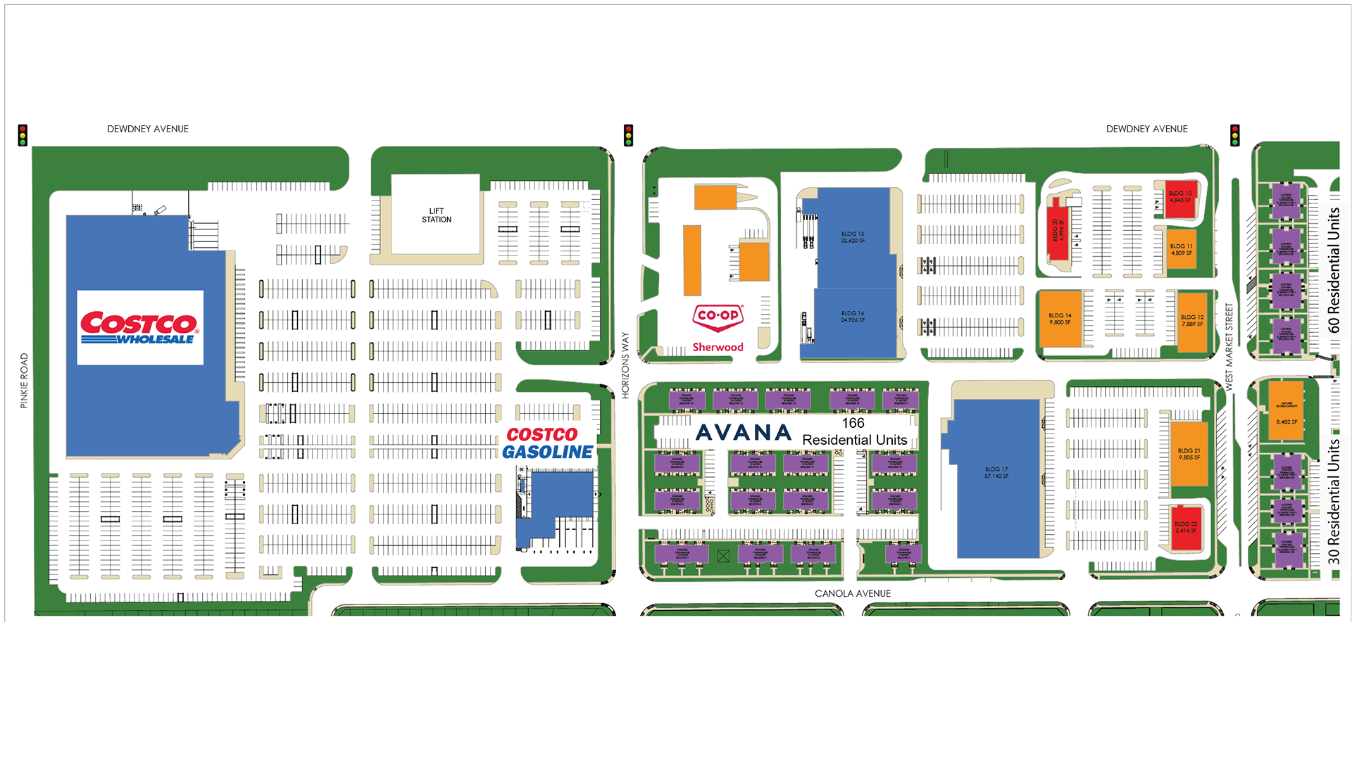 Anchored by Costco, Horizons will be the only regional retail site servicing West Regina in the city’s newest complete community. Westerra is a 490-acre complete community offering a wide variety of single family and multifamily homes and is expected to house 9,000 residents at full build-out. An urban community in a suburban location, Westerra is the closest new neighbourhood to the downtown core.
